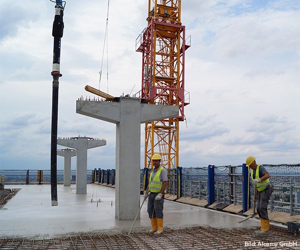 Das EDGE East Side Gebäude zählt zu den beeindruckendsten Bauprojekten in Berlin. Die Innovation liegt nicht nur in der Fassade, sondern besonders im CO₂-reduzierten Beton der Decken im 32. und 33. Stockwerk. Dieser setzt neue Maßstäbe für das CO₂-Äquivalent und erfüllt gleichzeitig die geforderte Betonfestigkeit. Im DBV-Rundschreiben 278 - Dezember 2023 berichten Experten unserer Mitgliedsunternehmen ZÜBLIN und alcemy, wie durch IoT-Sensorik CO₂-reduzierter Beton unter anspruchsvollen Bedingungen verbaut wurde, erstmals die Betonqualität in einem Projekt dieser Größe überwacht wurde und stark CO₂-reduzierte Betonrezepturen umgesetzt werden können.