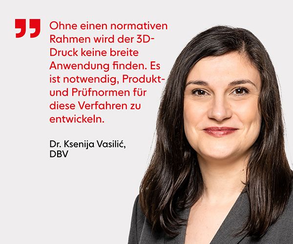 Die Errichtung von 3D-gedruckten Bauwerken steht vor Herausforderungen, da es bisher keine etablierten Normen für Beton-3D-Druck gibt. Dies führt zu zusätzlichen Kosten für Gutachten und Versuche, verlängert den Bauprozess und erschwert ihn. Ohne normativen Rahmen wird sich der 3D-Druck nicht weit verbreiten. Der DBV-Arbeitskreis „Digitale Fertigung im Betonbau" beschäftigt sich mit diesen Fragestellungen und identifiziert den Bedarf an Normen. Im DBV-Rundschreiben 278 gibt Dr. Ksenija Vasilić, Leiterin Forschung | Digitalisierung beim DBV einen Überblick über den aktuellen Stand der Entwicklungen.