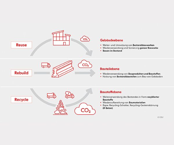 Vor dem Hintergrund von Klimaschutz und Ressourcenschonung ergeben sich steigende Anforderungen an den Umgang mit Bauprodukten und Baustoffen. Neben dem Recycling ist in diesem Zusammenhang die Weiter- bzw. Wiederverwendung von Bauprodukten und Baustoffen von großer Bedeutung. Gefordert sind neben den Regelsetzern auch die am Bau Beteiligten: Bauherren, Planer und Bauausführende. Im DBV-Rundschreiben 278 - Dezember 2023 geben wir für den Bereich des allgemeinen Hochbaus einen kurzen Überblick über Erfordernisse, Chancen sowie Risiken und betrachten rechtliche und technische Rahmenbedingungen.